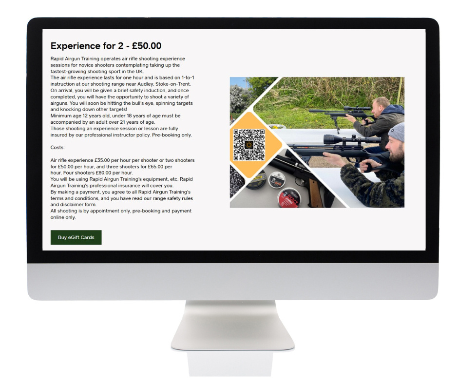 Airgun Shooting Gift Vouchers & Much More, Book Online!Book early to secure your air rifle or air pistol experience, lesson or course to avoid disappointment!Anyone ordering a product or service from our websites will be deemed to be at least 18 years old.